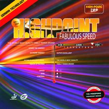 729 Friendship Highpoint is a high speed, fast spinning rubber. It is made with fine high elastic sponge. The combination of rubber and sponge are perfect. The frosted rubber surface makes it possible for you to produce a variety of spinning and changes at will, and the smooth soft high elastic sponge helps you to acquire appropriate ball driving speed. Superior speed and spin suitable for mid distance loop.