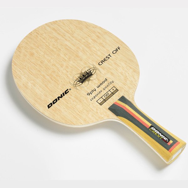 Crest stands for perfection, the absolute top of the range. Conceited? Test it yourself! DONIC CREST is impressive with its fantastic feel! Experience the unique feel of this blade.Nine perfectly adjusted and precisely processed plies are the secret of these absolute top class offensive blades: Fast, excellent feel, very solid and relatively light despite the nine plies.The extremely thin carbon layers guarantee a much larger sweetspot, the Carbon ZF-plies create stability, flexibility and la blade that is light to play with.Excellent playing characteristics, wonderful touch and the ultimate feel!