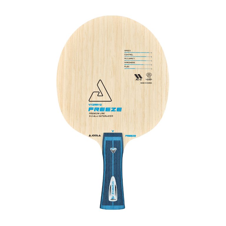 The highest-grade Arylate Carbon (ALC) was selected for the VYZARYZ FREEZE. The ALC composite layer gives a hard and powerful feel, while our innovative low temperature curing technique brings extra feeling and touch to the blade. The combination of using high quality ALC and a cutting-edge adhesion technique brings a one-of-a-kind blade that has been never seen before. With a Limba outer-ply, players can rely on the VYZARYZ FREEZE to provide the ultimate touch for their need to spin
