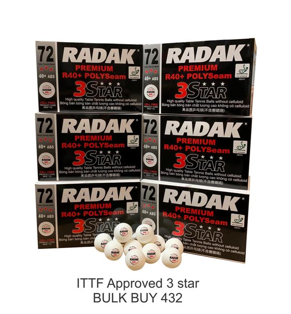 Radak Polyseam R40+ 3 star Table Tennis Balls Bulk 432 ITTF Approved