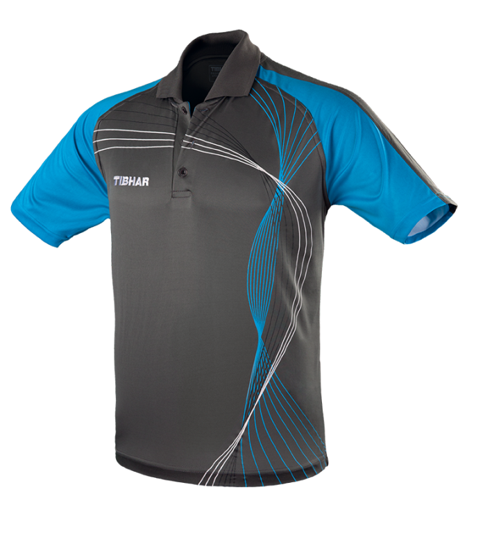 Thermo active table tennis Shirt with buttoned piqué collar, made from extra soft microfibre. Next to its ergonomic cut it features a sporty and dynamic print application on the front and attractive colour combinations.