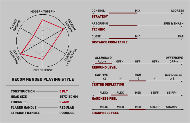 5 Ply weapon with superseding control European style neo-classic. CLASSIC ALLROUND blade of European style construction. Lower and controlled speed rather provides the opportunity to manage the game against opponent. Slightly bigger & thinner face fits well to soft/max sponges in balance. Solid and clear feel connects the player to the right senses over the ball. Perfect for traditional allround player.