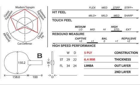One of the most powerful all-wood 5-ply blades. ARIA aims the all-round power play close to table and even from mid or far distance. Thick, medium soft wood of top layer provides neutral feel. Second layer provides clear feel and best balance. Overall thickness is 6.4 mm, which is considered as the maximum for maintaing the distinctive advantage of 5-ply offensive blade. ARIA shows top level of comfort as a powerful blade. It is hard and fast, but is able to catch ball softly and then release it with great control, especially when players attack with topspin. The ball flies very fast, and draws sharp and aggressive trajectory. ARIA is recommended to skilled players. New “Hyper Elasto” rubbers as VEGA PRO or VEGA ASIA will make the best combination with ARIA.